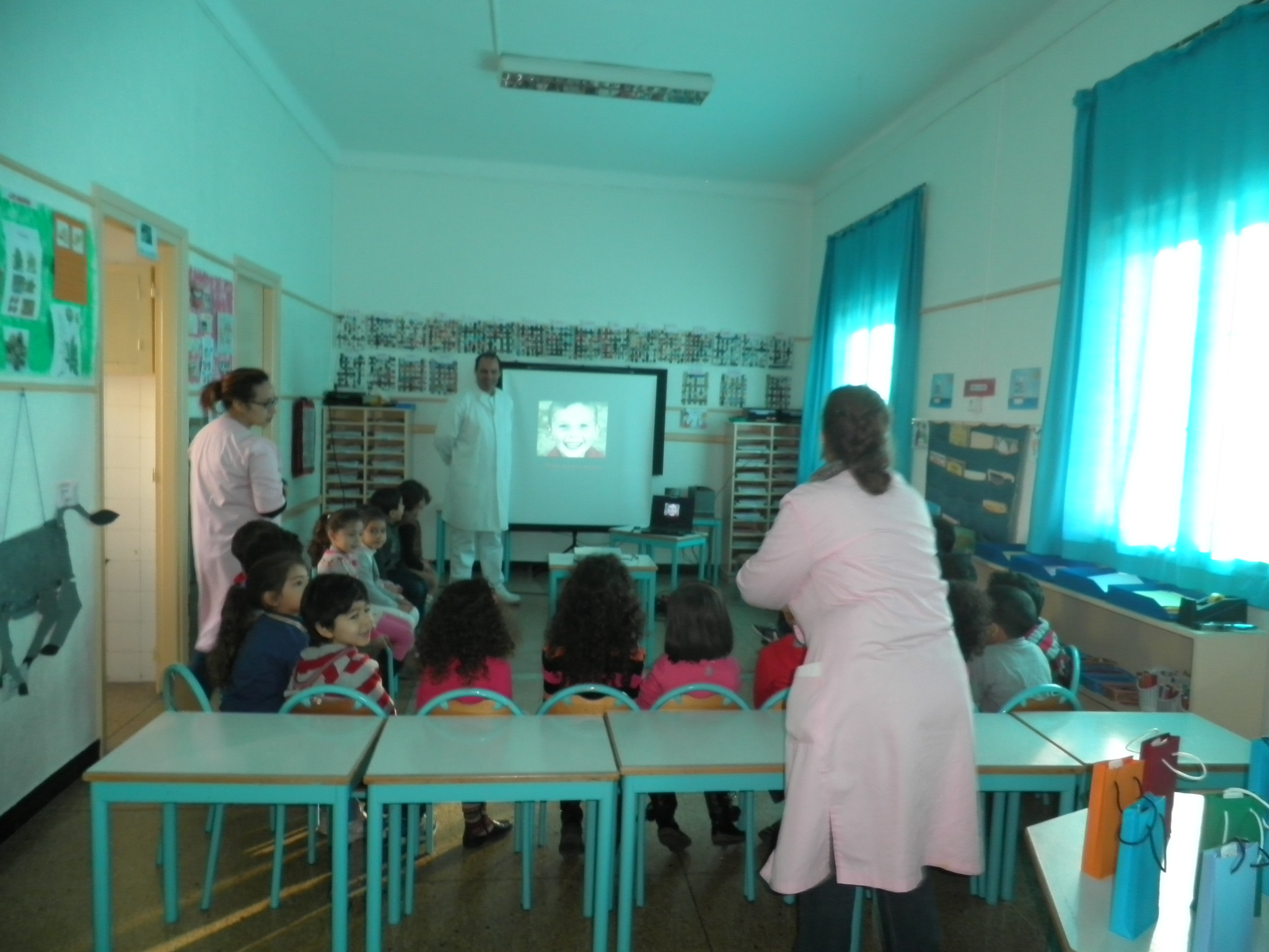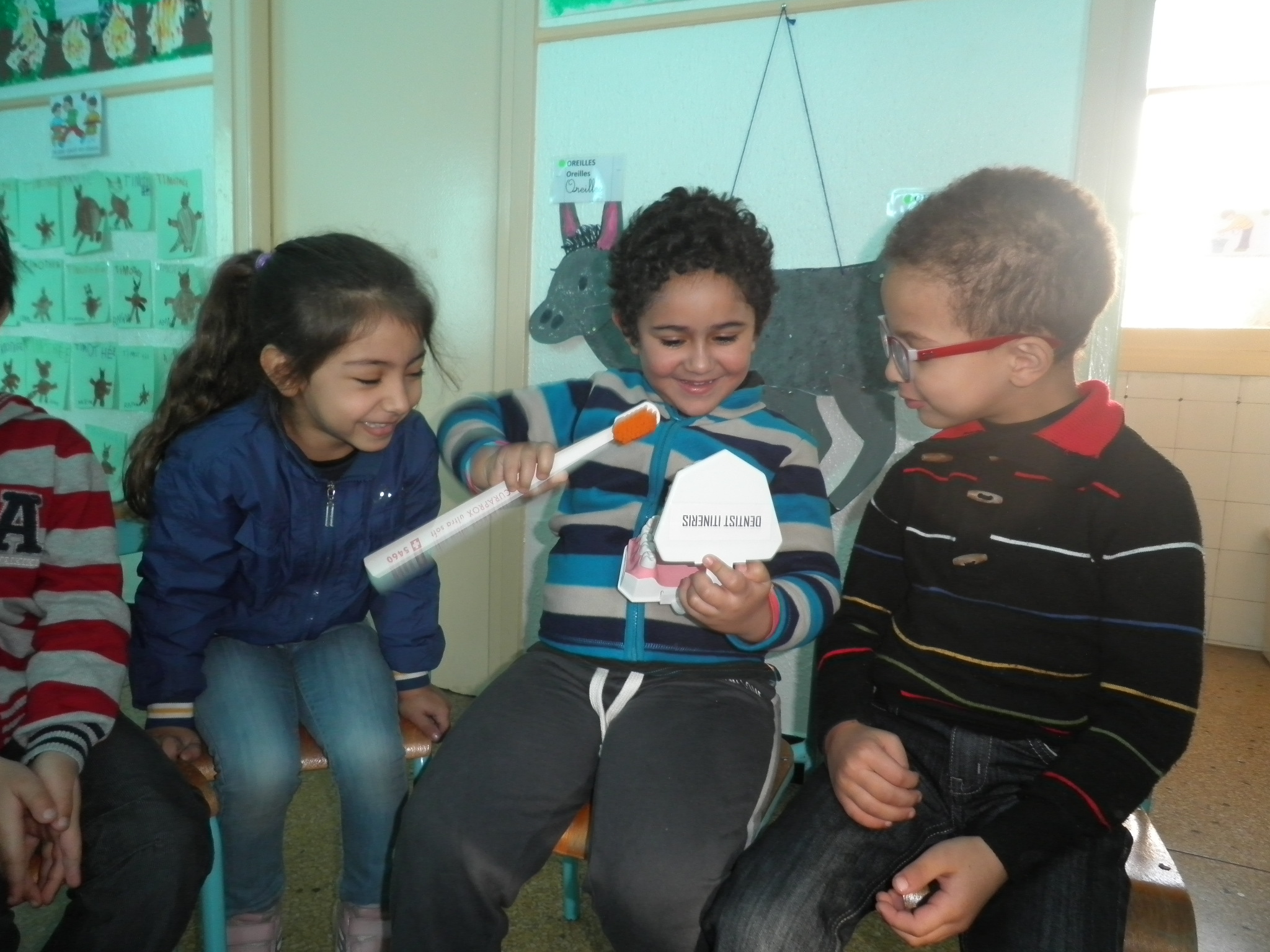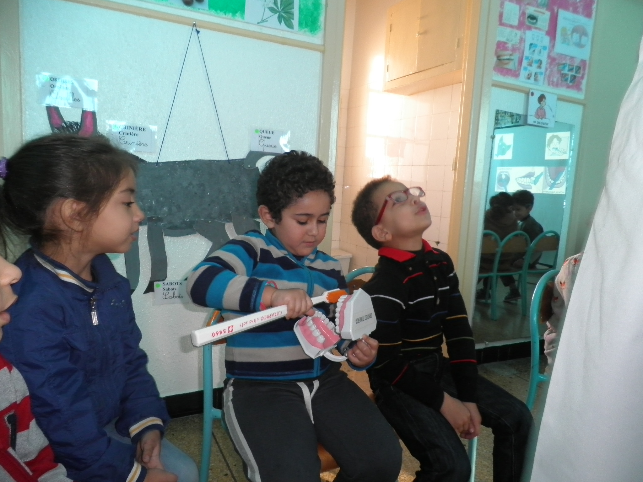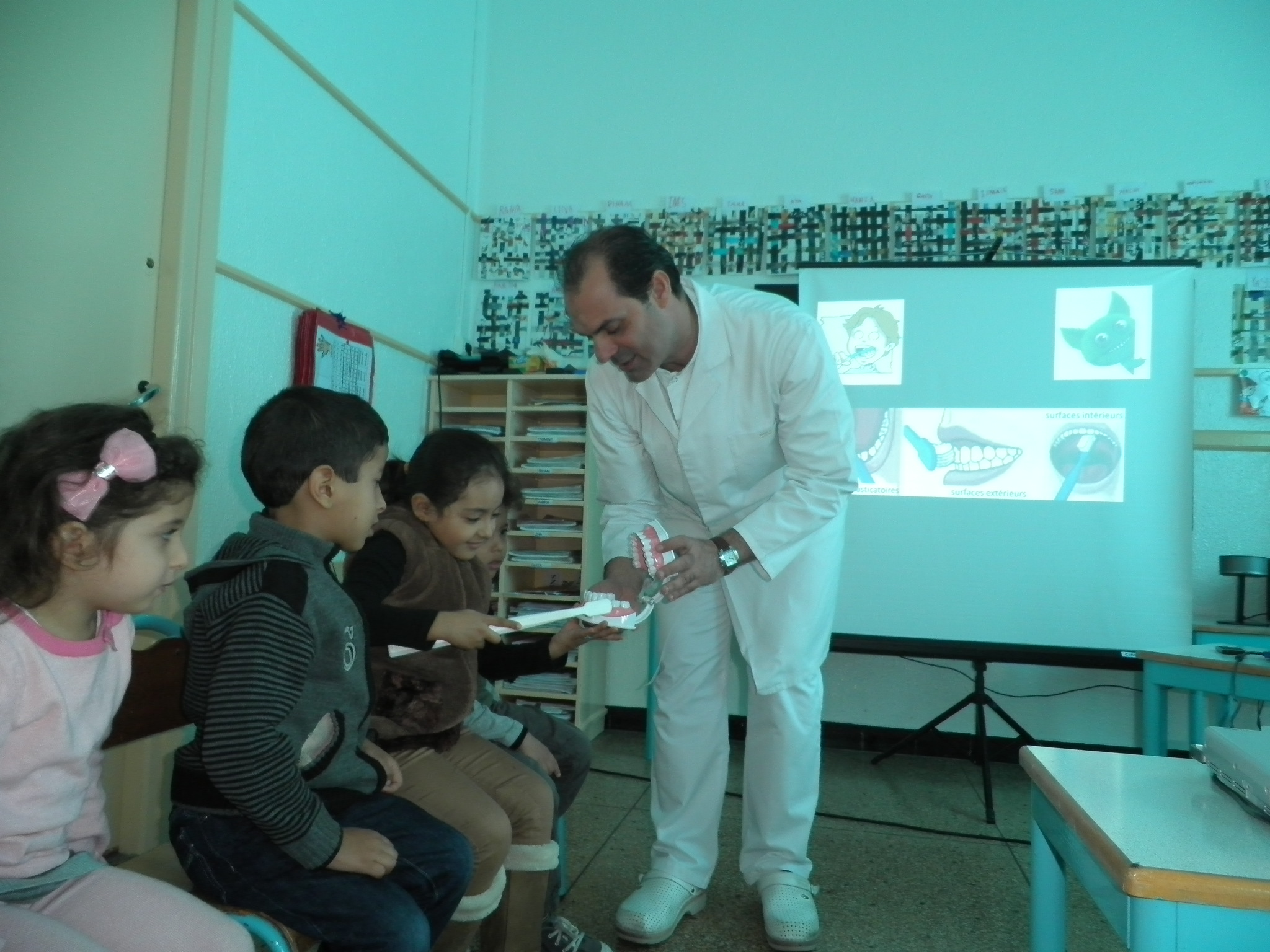 Méthodes de brossage, rôle des dents dans le développement social, les conséquences d’une dentition négligée sont autant de thèmes présentés aux enfants à travers des dessins animés et des explications adaptées.